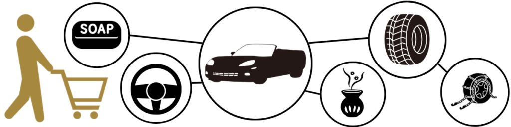 • 「車」→ハンドルカバー、芳香剤